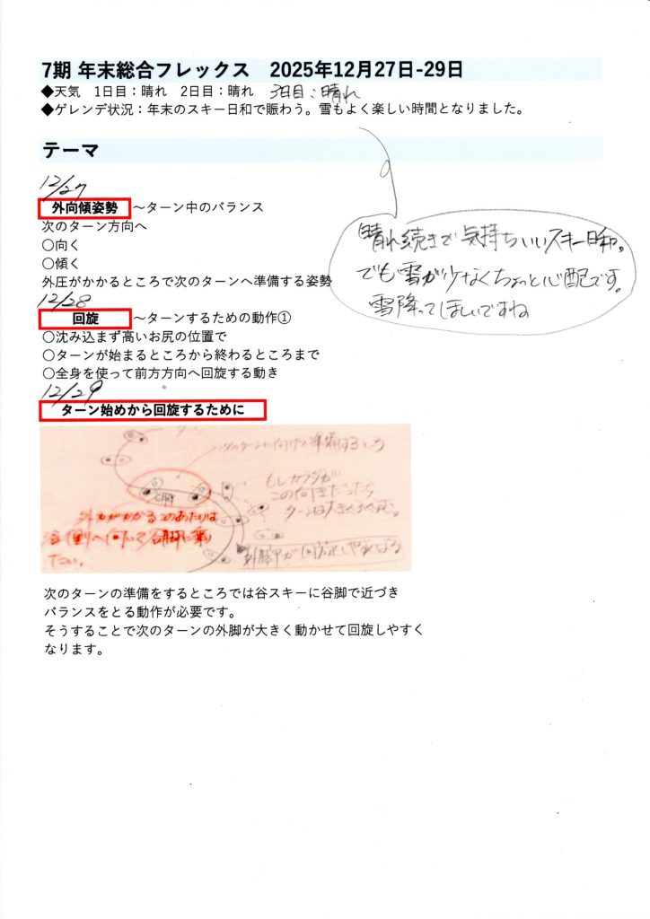 滑れるコースが限られている中ではありますが7期12/27-29日のご参加の皆さまありがとうございました。