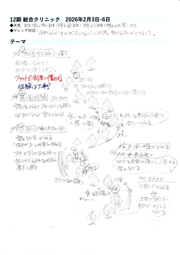 晴天に恵まれた平日 公開日:2026年2月6日 カテゴリー: レッスン 晴れが続き視界良好!本日午後から寒気が入りガスとなる。雪がやってくるか期待しよう!12期ご参加の皆様ありがとうございましたm(_ _)m